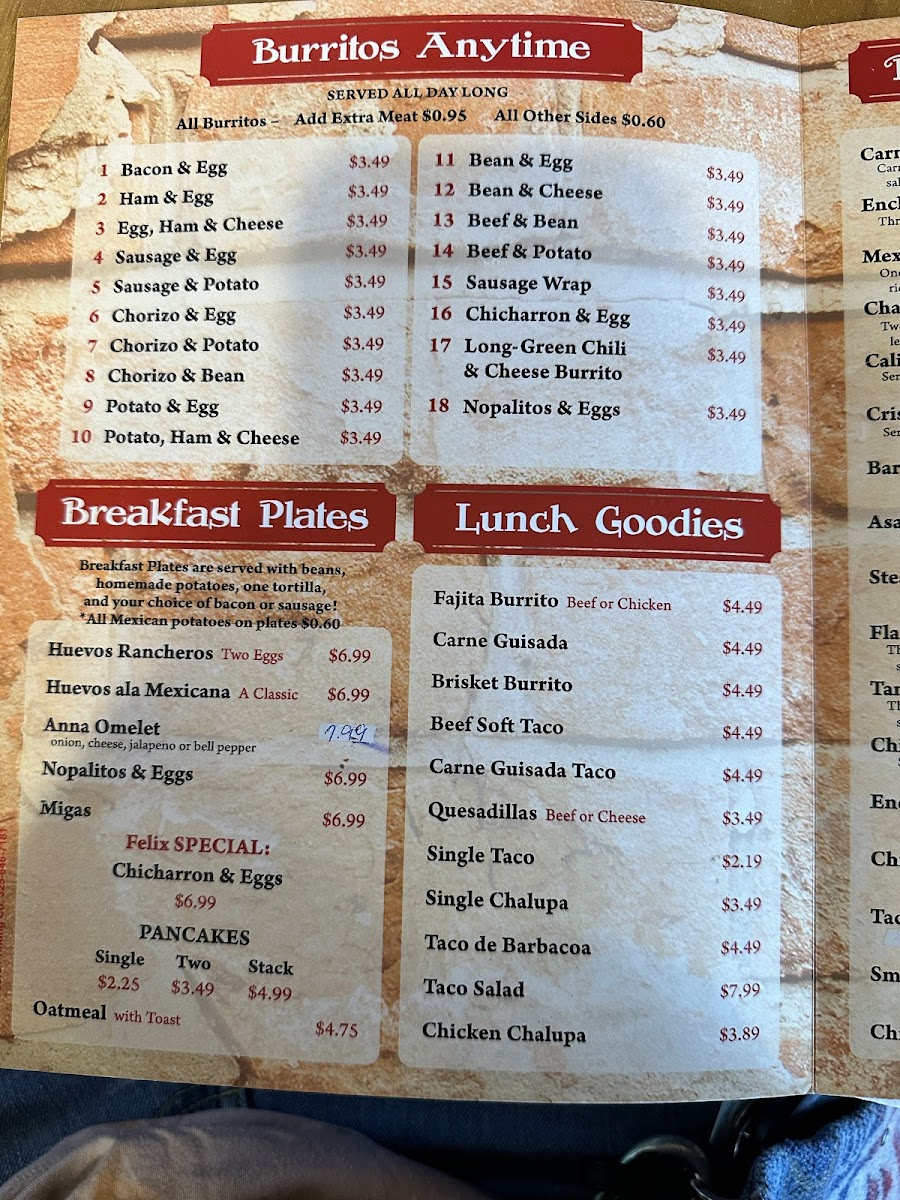 The lunch menu is equally enticing, featuring hearty selections such as the brisket burrito and spicy steak burrito, each for $5.99. For families, the menu includes dishes for kids under ten, making it a friendly spot for everyone to enjoy.